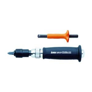 普通のドライバーでは緩めることのできない「溝のすり滅ったねじ」や「錆びついて固まっているねじ」を緩める時や、特に強く締め付ける時に使用します。ハンドルを握り、ねじを回す方向に手の力を加えながらハンドルの尻をハンマで叩くと、その力が回転に変化して容易にねじを締めたり緩めたりすることができます。